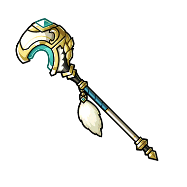 - 五穀豊穣の神の御使いである白き狐の力が宿った杖。 この白狐に捧げられた武器には、証として麦の穂と狐尾があしらわれている。