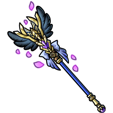 - 夜に鳴く鴉のように一際異彩を放つ杖。魔力を纏う事で周囲に風が発生し、華が舞い踊るらしい。