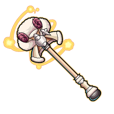 - 羊毛装備をモチーフに作られた杖。 その柔らかな見た目とは裏腹に膨大な魔力が込められている。 角を模した飾りは魔石で作られており、魔力を集約させることができる。