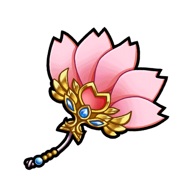 - 春の神樹に祝福され煌きをまとった扇。その清らかな風は世の穢れを無き物にする。