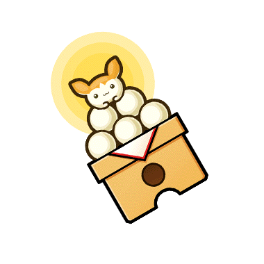 - お月見団子とその頂点に鎮座するリミミン。なぜか月光のような後光が差している。