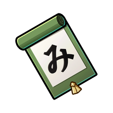 - 「み」と書かれた掛け軸。 この後には何が来るんだろうか?