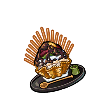 - 栗きんとん、黒蜜、小豆、ソフトクリーム、抹茶アイス、白玉…書ききれないほどゴージャスなトッピングのパフェ! 気分次第でもっとゴージャスになることも。
