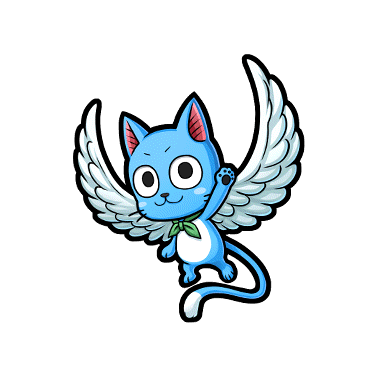 - ギルド『妖精の尻尾』のメンバーであり、ナツの相棒。エクシードとよばれる猫に似た種族であり、「翼」と呼ばれる魔法を使用し、他メンバーをサポートする。