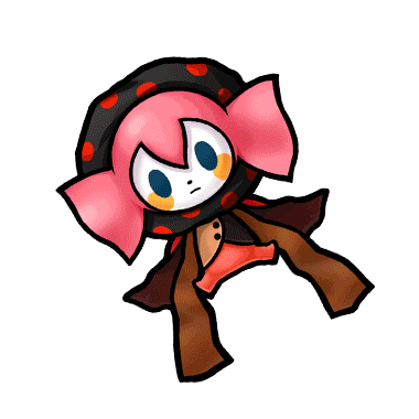 - お菓子の魔女の姿を模った聖具。ふわふわと浮かぶその姿はいますぐ動き出しそうなほどそっくり。