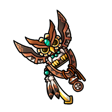 - 夜の闇に紛れ悪事を働くものを成敗する勇敢な梟を称え、模した聖具。たとえ止まり木で休んでいたとしても悪事は見逃さないという決意が感じられる。