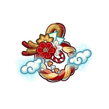 - 縁起のいい紅白の華をあしらった注連飾り。破魔の力を宿し淡い光を放っている。