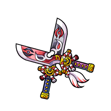 - 朧をモチーフに作られた双剣。 精霊の力が宿っており、使用者には炎を操る力が与えられる。