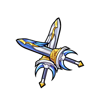 - 白に瑠璃色の刺し色が可憐な印象を与える双剣。持つ者の戦闘を彩り、勝利に導いてくれるという。