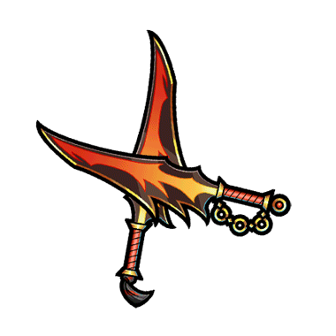 - ヴランドとクゥが戦う様子を目撃したシゲリスの職人のひとりによって作られた双剣。 長く使い込まれることによって武器に込められた炎のエネルギーが強まるらしい。