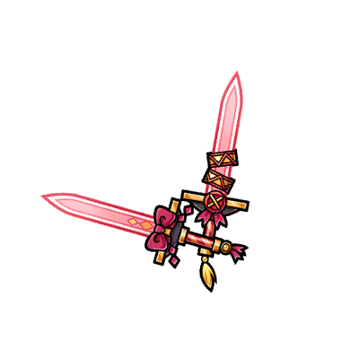 - めぐみんとゆんゆんをモチーフにした双剣。それぞれの衣装や持ち物が意匠に取り込まれている。