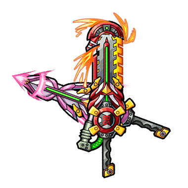 - グランヴィーアの職人が創り上げたエヴァンゲリオン2号機、8号機をモチーフとした双剣。赤い剣は火力を重視した作り、桃色の剣は切れ味を重視した作りとなっている。