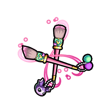 - リリスがカスタマイズして、さらにデコったメイクブラシ。 アクリルキーホルダーはワルヤミミンのマスコットにチェンジした。