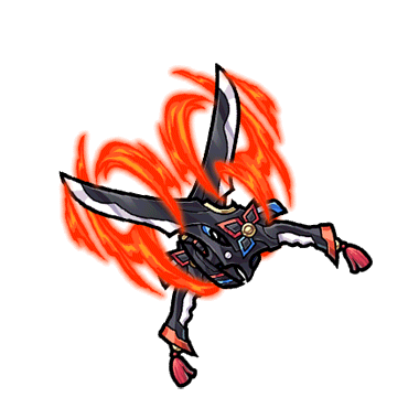 - 蒼色と紅色の差し色が特徴的な双剣。 刃に宿る炎炎としたオーラは邪を祓うと言う。