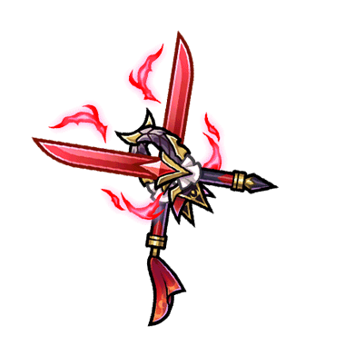 - 血に染まったような色をしている双剣。剣身が赤いことから、敵を切り裂く様はまるで血のドレスを纏っているかのように揶揄される。