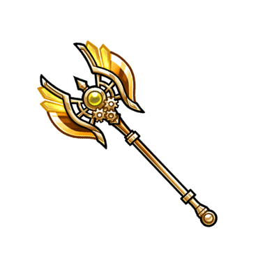 - 時を刻む歯車と煌めく金の宝玉があしらわれた斧。 手にすると全身に活力が漲り、未来を切り開く希望の光が心に差し込む。
