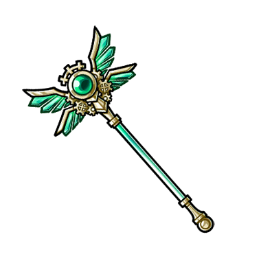 - 時を刻む歯車と深緑の宝玉があしらわれた杖。 手にすると鋭き風を纏うことができ、あらゆる束縛を払う。