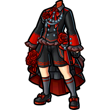 Angelic trill、2024年秋冬の新作。 血のように鮮やかな赤い薔薇の装飾が施されたこの一着は、ダークな印象を与えつつも、甘美な魅力で貴方を引き立てます。