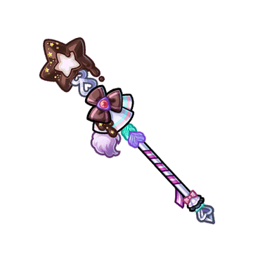 - 見た目の愛らしさとは裏腹に高い実用性を備えた杖。甘い香りが漂い、持つ者に勇気を与えると言われている。戦闘中でも周囲を明るくするデザインで、仲間たちの心をひとつにする。