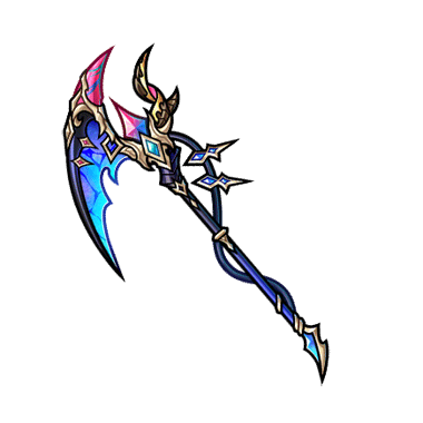 - 夜の帳が下りる頃、その真価を発揮する鎌。 その禍々しい装飾は見る者を惑わす妖しい光を放ち、瞬く間に対象の心を支配する。所持者は強大な力を手にするが、自らも武器による支配に抗う必要がある。