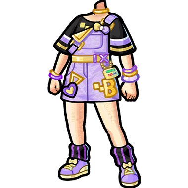 BitCrusher、ポップスタイルの新作コーデ。 大人っぽいパープルを基調に、派手すぎない色合いでデザインされたジャンパースカート。特別な日でも自信を持って楽しみたい方に最適な一着。