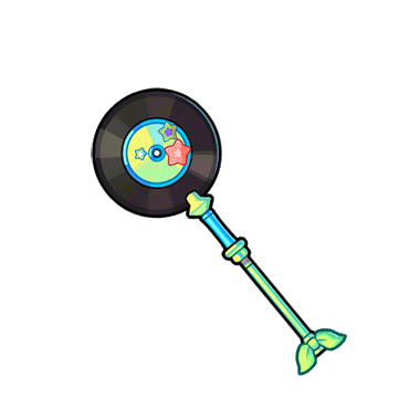 - レコードをあしらった杖。魔法を放つと軽快なメロディが流れる。