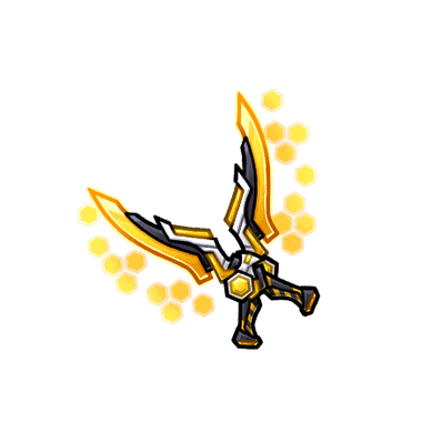 - ハニカム型のエネルギーを展開することで、機動力を向上させることができる双剣。荒ぶる蜂の如く素早くターゲットを翻弄し、瞬きの間に敵を一網打尽にする。