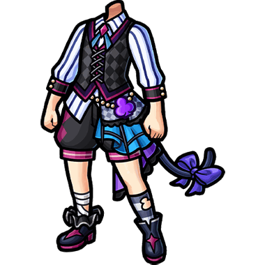 - 妖しげで歪んだ少女をイメージしたスーツ。 クローバー柄やしっぽなど様々な装飾が混在しているこのスーツは、不思議な悪夢を形にしたようだ。