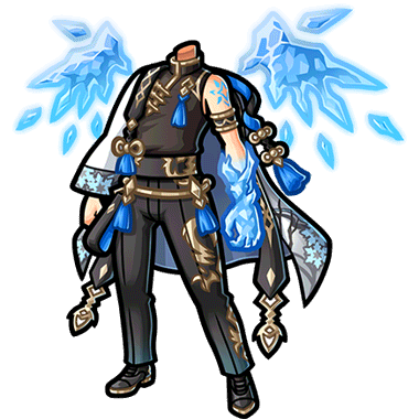 - ヨトゥンが力を解放した時の姿を模した男性用の衣装。 神秘の獣の氷の力が、羽のように浮かび上がっている。