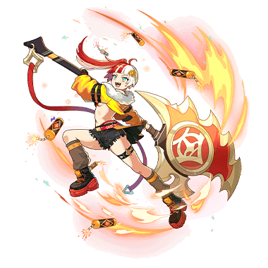 - サーカスで披露されるヒーローショーの主役。 正義感溢れる溌溂とした立ち振る舞いと、小さな体で巨大な斧を振り回す迫力あるアクションは、まさに本物のヒーローそのものである。 「みんなの応援を力に変えて、正義のために私は戦う!」