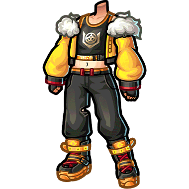 - 黄金に輝くジャケットに、シックな黒色の対比がポイントのコスチューム。