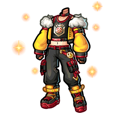 - 黄金に輝くジャケットに、シックな黒色の対比がポイントのコスチューム。 英雄が着るのにふさわしい輝きを放っている。