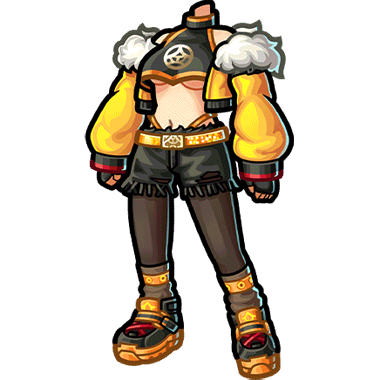 - 黄金に輝くジャケットに、シックな黒色の対比がポイントの衣装。