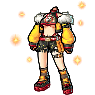 - 黄金に輝くジャケットに、シックな黒色の対比がポイントの衣装。 英雄が着るのにふさわしい輝きを放っている。