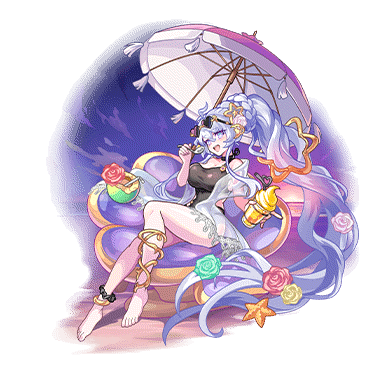 - 夏の浜辺に遊びにやってきた女神の一人。煌く青い空と海は涼しい木陰から楽しんで、陽が落ちてから渚に降臨した。