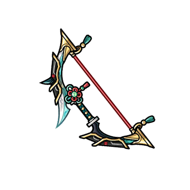- 迅風の一撃を放ち、翠玉の輝きを宿す弓。 古より主君を護り通すことを誓った一族の刀鍛冶が、風の神気を宿らせて作り上げた至高の逸品。