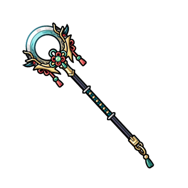 - 迅風の一撃を放ち、翠玉の輝きを宿す杖。 古より主君を護り通すことを誓った一族の刀鍛冶が、風の神気を宿らせて作り上げた至高の逸品。