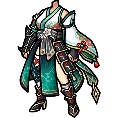 - 翠玉の輝きを宿し、風の神気を纏う護りの衣。 一族に古くから伝わる秘法で織り上げられたこの装束は、所有者の命を守護すると同時に、優雅なる心持ちを育む。