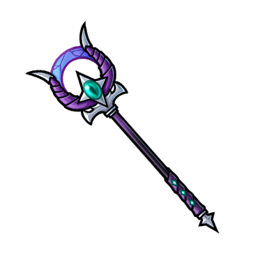 - その杖に宿る呪いの瞳は、見つめた者の運命を不幸へと変える。 呪われし者が増えるたび、瞳の輝きと呪いの力は増していくという。