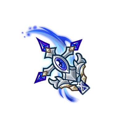 - 天空の煌めきを宿した聖具。鮮やかな青の装飾が持ち主に冷静さと鋭さを与える。その洗練された美しいフォルムは持つ者を引き立て、周囲を惹きつけるという。