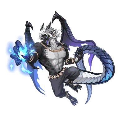 - 竜族の末裔であるゼド。鍛え抜かれた肉体と青い炎を用いて戦う、歴戦の戦士。