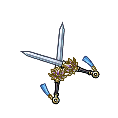 - 美しい双剣。月のない星の夜にだけ、鏡のような水面に咲くという花を柄にあしらっている。