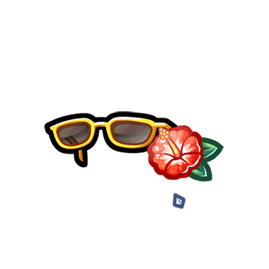 - 耳元に飾られたハイビスカスが涼し気なサングラス。