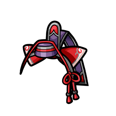 - 鮮やかな紅色の生地が印象的な冠。名のある工房が仕上げた装飾品としても防具としても一級品だ。