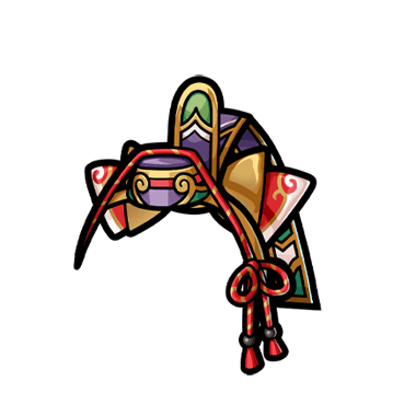 - 鮮やかな紅色が印象的な冠に、逆巻く炎や流れる熱気を思わせる流文様が施されている。いざ戦いとなれば華々しい大立ち回りをすることができるだろう。