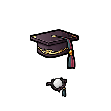 - 月の光を凝縮させた糸で縫い上げた角帽。 ゆっくりと頁を捲るように姿を変える月の様子に、知識を貯めて新しい事を識る魔法図書館の理念を重ね「月影」の名を冠せられた。