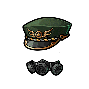 - とある時代に栄えたとされる帝国軍が使用していたという帽子。 その特徴的なガスマスクは、ガスを防ぐのみでなく、帝国の恐ろしさを象徴するデザインとなっている。