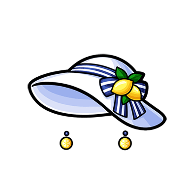 - レモンのついたかわいい帽子におしゃれなイヤリング。 レモン柄のワンピースとも相性バッチリだ。