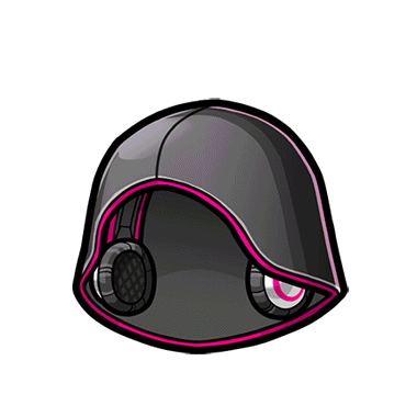- 紅紫と黒を基調にしたフード。 強い雨や照りつける光、凍てつく寒さなどから頭を保護してくれる。