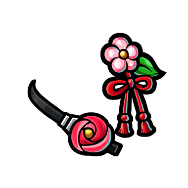 - 椿をあしらった眼帯。一輪の椿は踊るように戦場を駆け巡る。